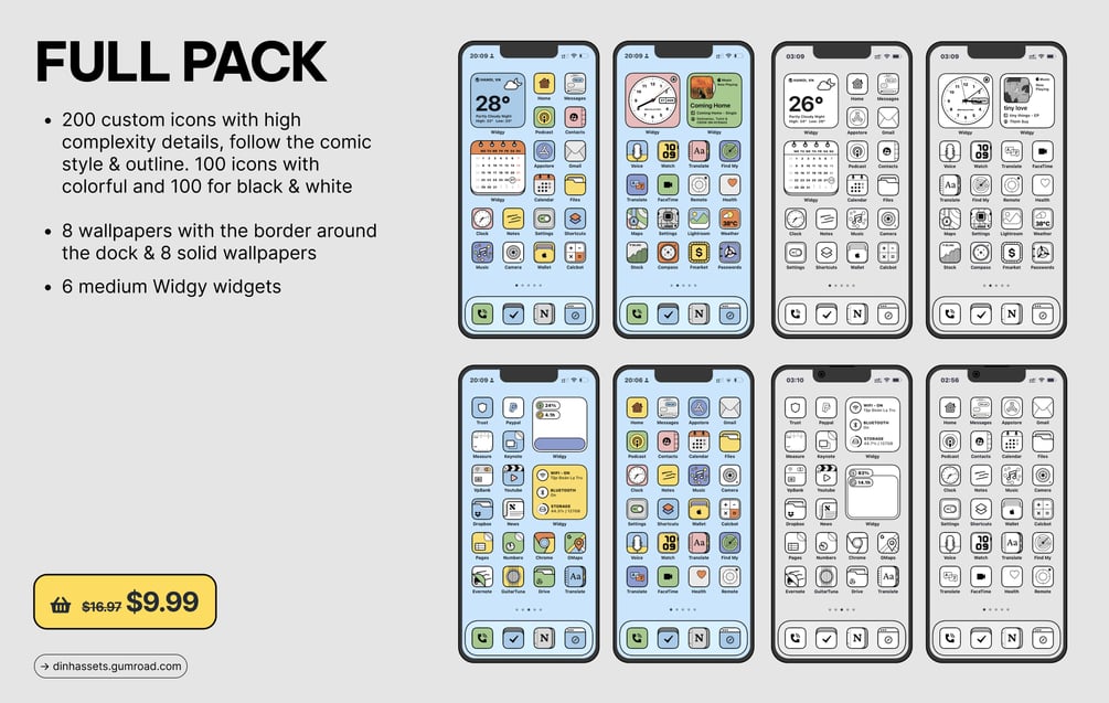 GUMMI®'s aesthetic was inspired by the rebranding of Gumroad in 2021 and a few retro styles look like comic art books and vintage posters. This theme includes 200 icons with two versions: color & grayscale!
